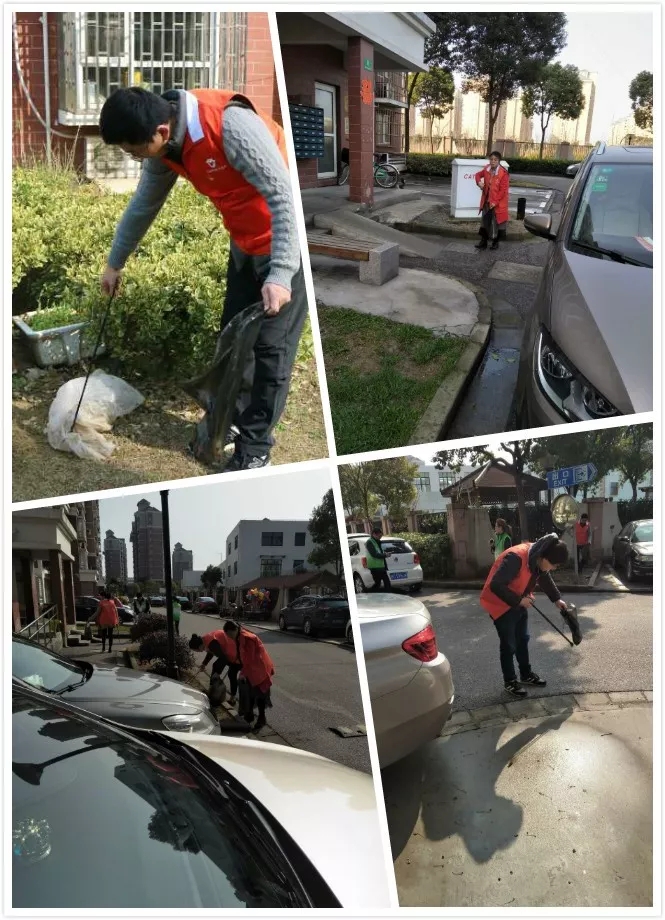 3月4日,大红鹰dhy的志愿者和吴泾地区其他志愿者一起,在虹梅景苑第二居民区进行卫生整治、规范停车等服务,为街面