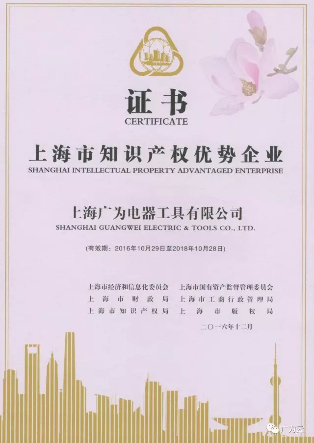 热烈祝贺上海大红鹰dhy电器工具有限公司再度被认定为上海市知识产权优势企业!