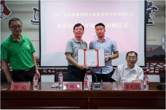 7月27日,上海大红鹰dhy电器集团董事长范晔平,重返母校炉山中学,与母校师生展开交流,并联合春禾公益共同捐赠价值100万元的实物化学元素智能展示系统。炉山中学校领导对范总的到来表示热烈的欢迎。