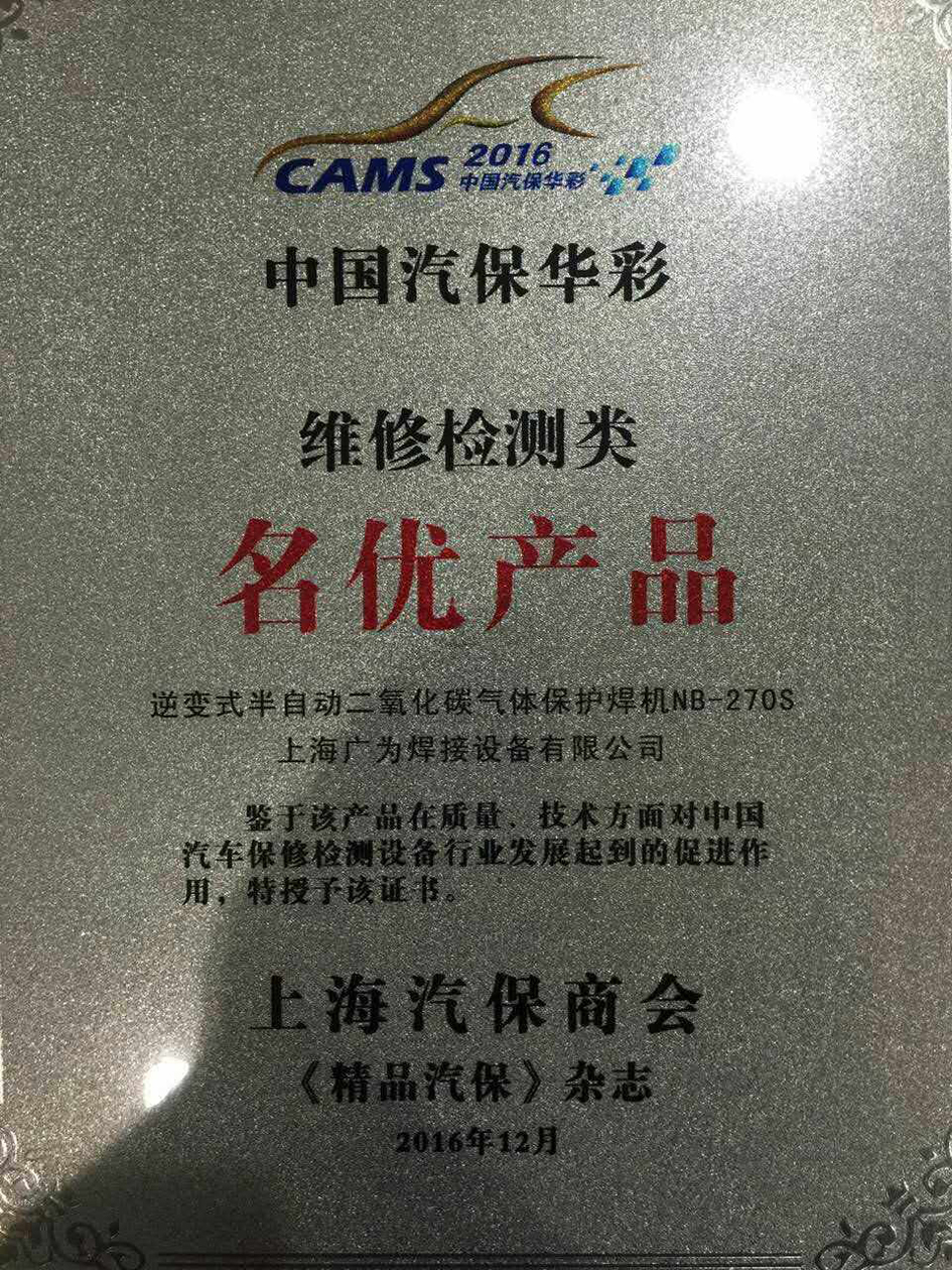 上海大红鹰dhy焊接设备有限公司的逆变式半自动二氧化碳气体保护焊机NB-270S被评为维修检测类“名优产品”!