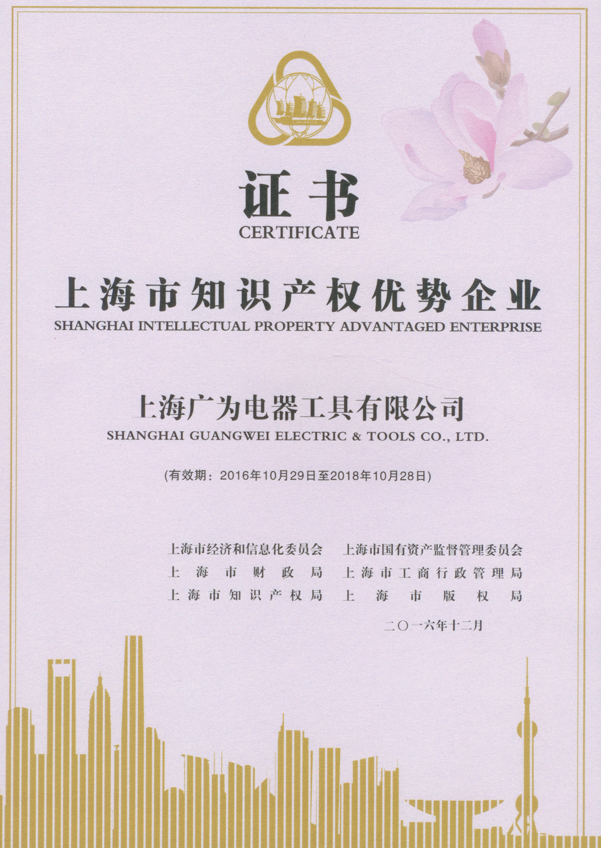 热烈祝贺上海大红鹰dhy电器工具有限公司再度被认定为上海市知识产权优势企业!