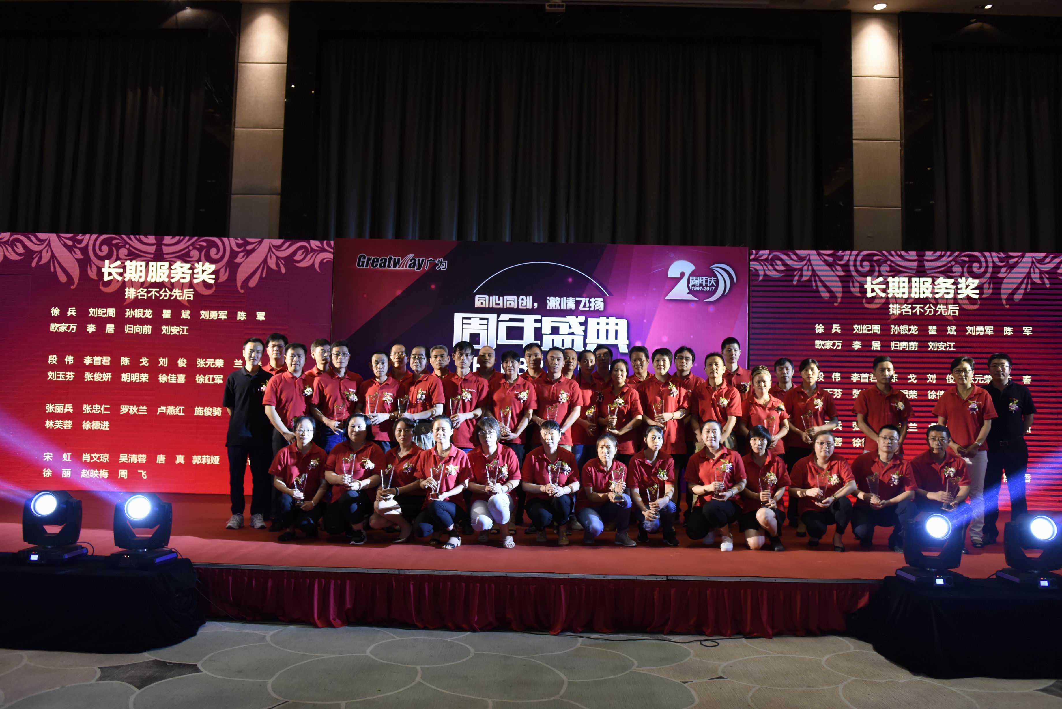 大红鹰dhy最宝贵的,就是拥有一批忠诚奉献的员工,从1997年大红鹰dhy成立,直到20年后的今天,在大红鹰dhy工龄达10年以上的员工有42位,此次庆典对这批特殊员工进行了表彰。