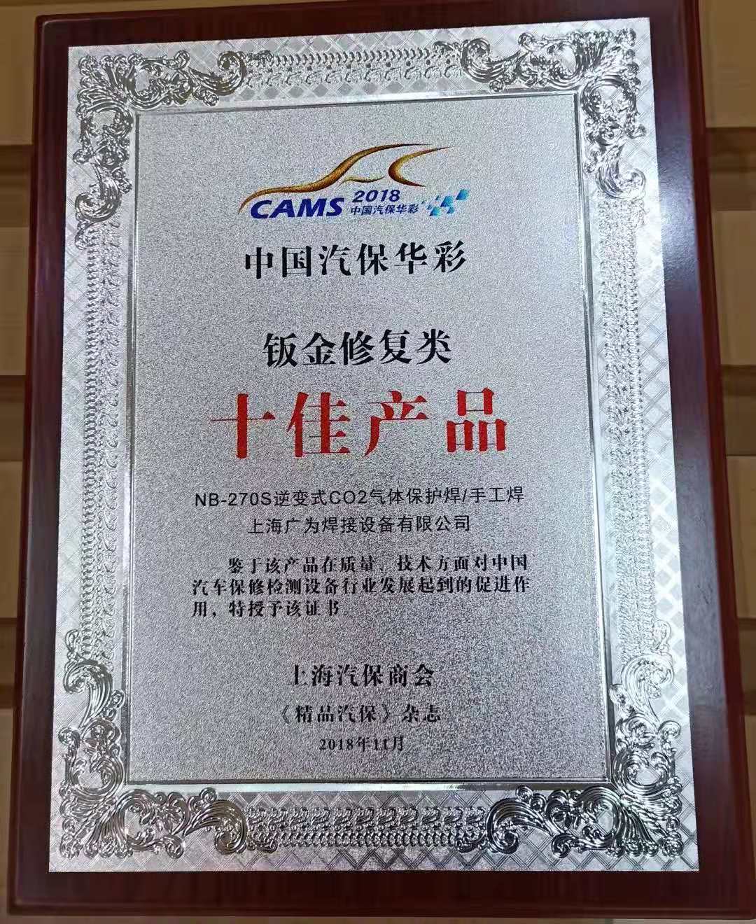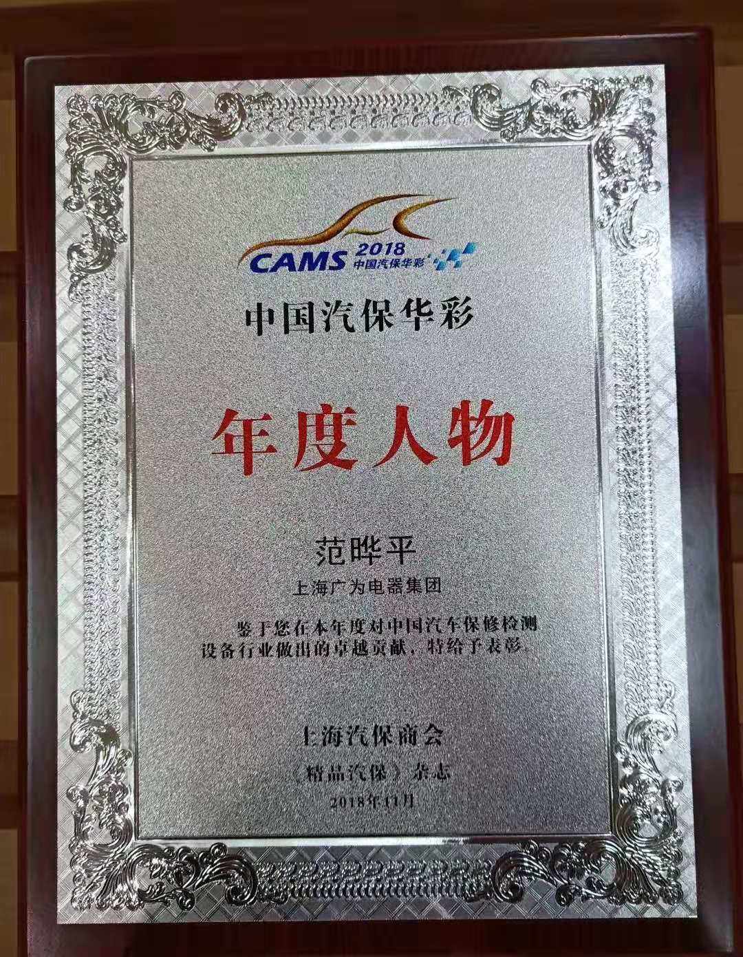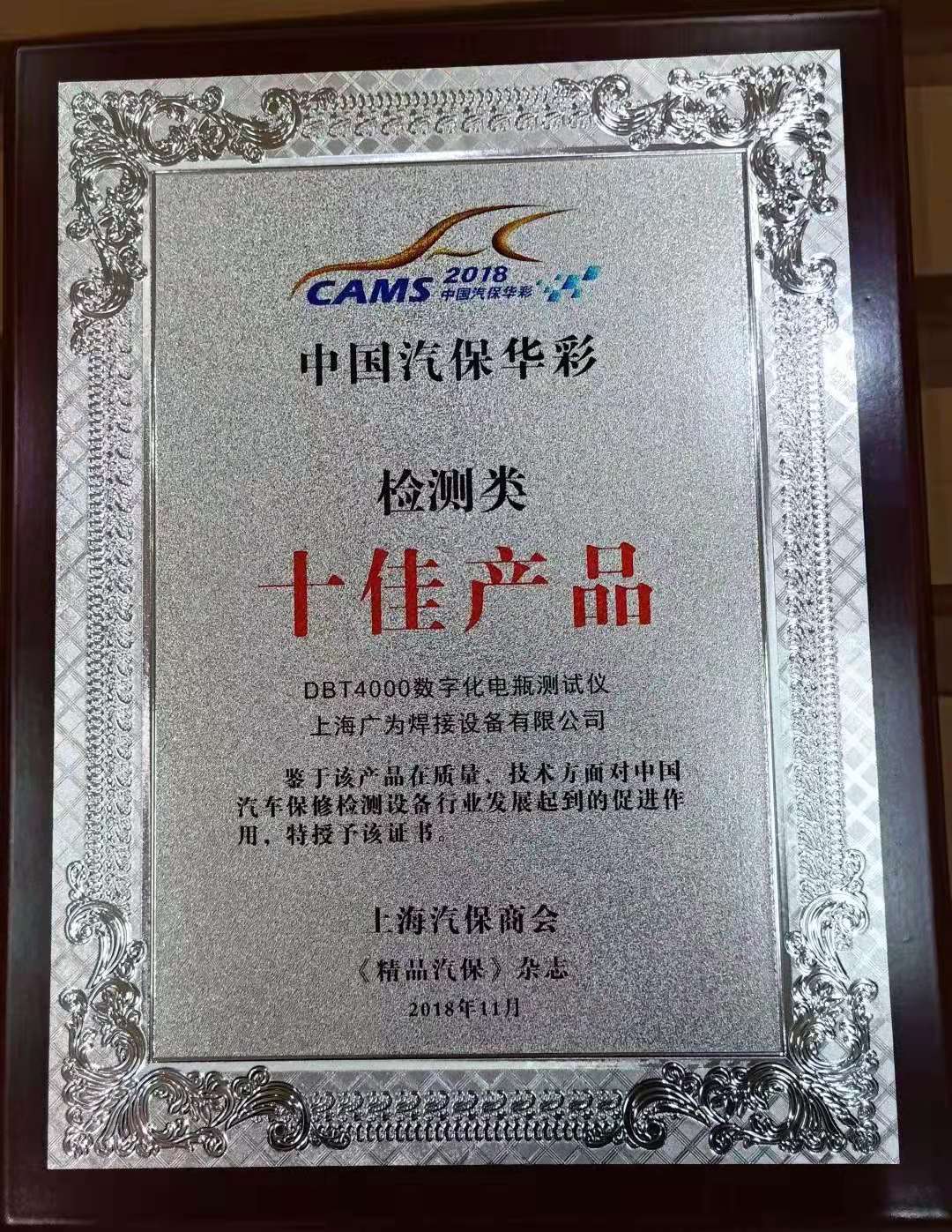 2018年11月29日,由上海汽保商会、法兰克福展览(上海)有限公司主办的第十二届中国(上海)汽车保修检测设备经销商大会暨中国汽保华彩“2018年度人物”、“十佳产品”表彰活动颁奖典礼在国家会展中心(上海)举行。