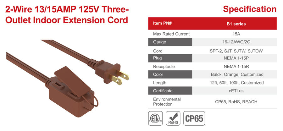 2-WIRE 13AMP 125V THREE-OUTLET